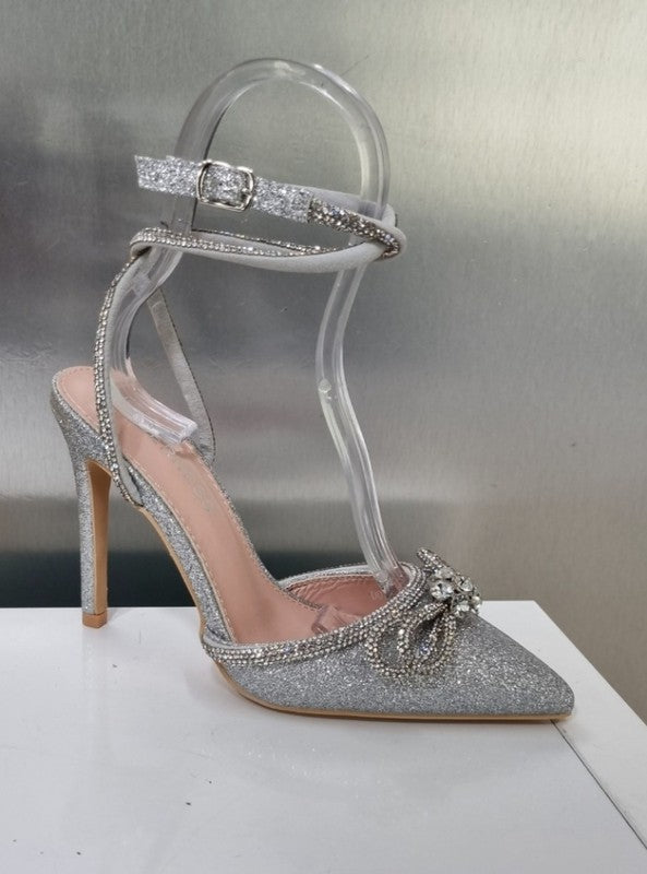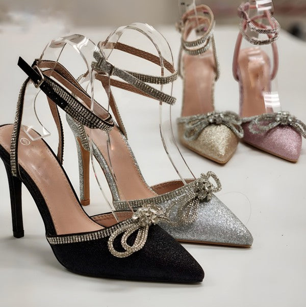 Heel:4.25" Bow decor. Rhinestone embellishments