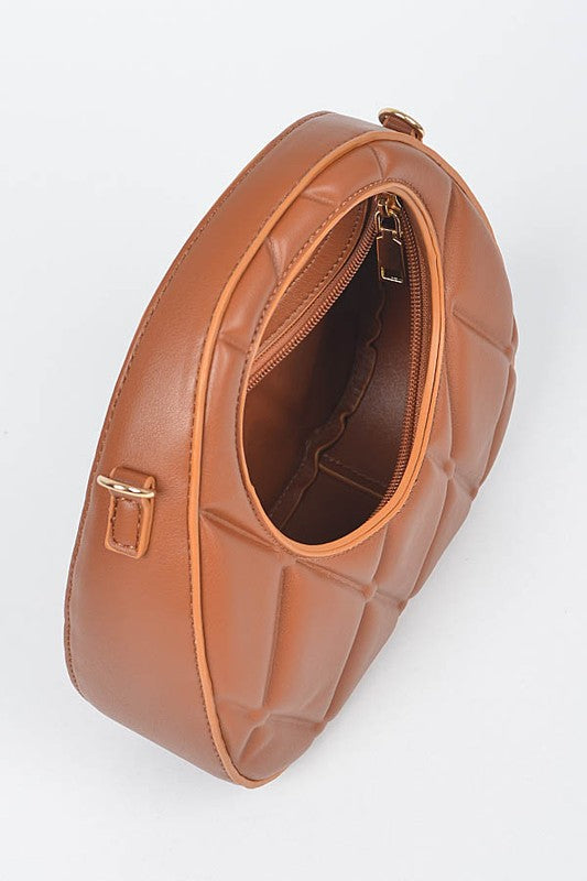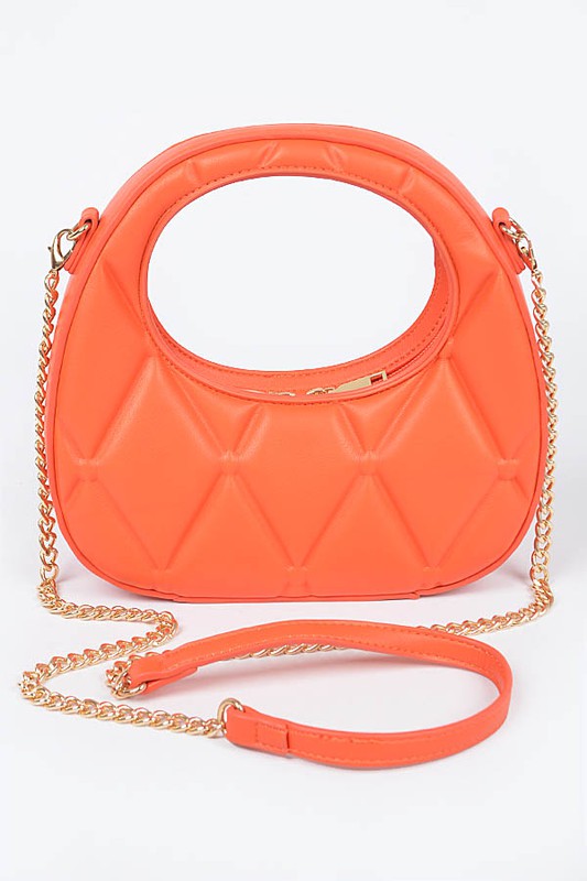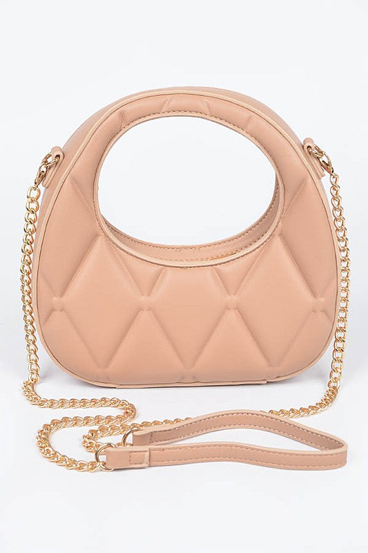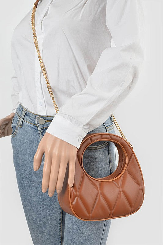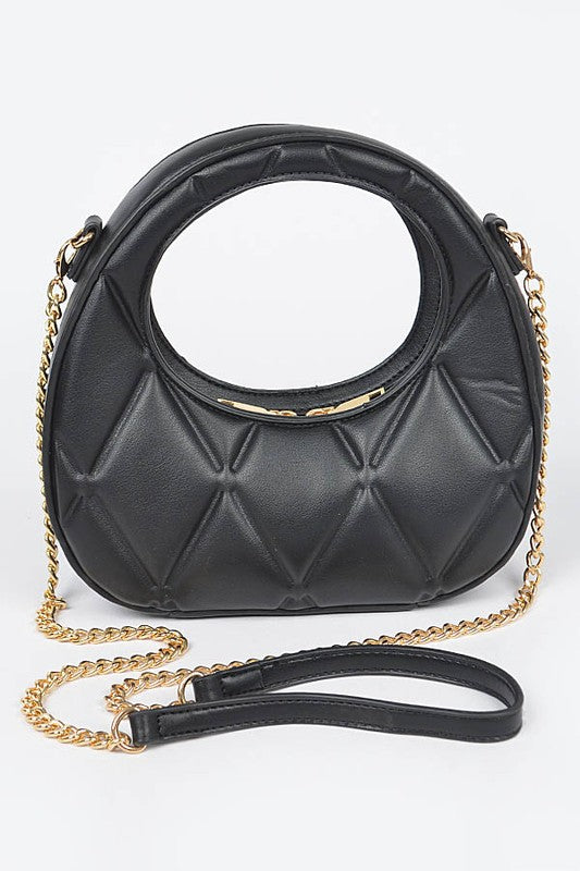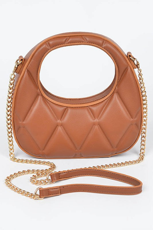 * Quilted Faux Leather Handle Bag * 8.5W*8H*2.75D * Polyurethane,Mixed Metal