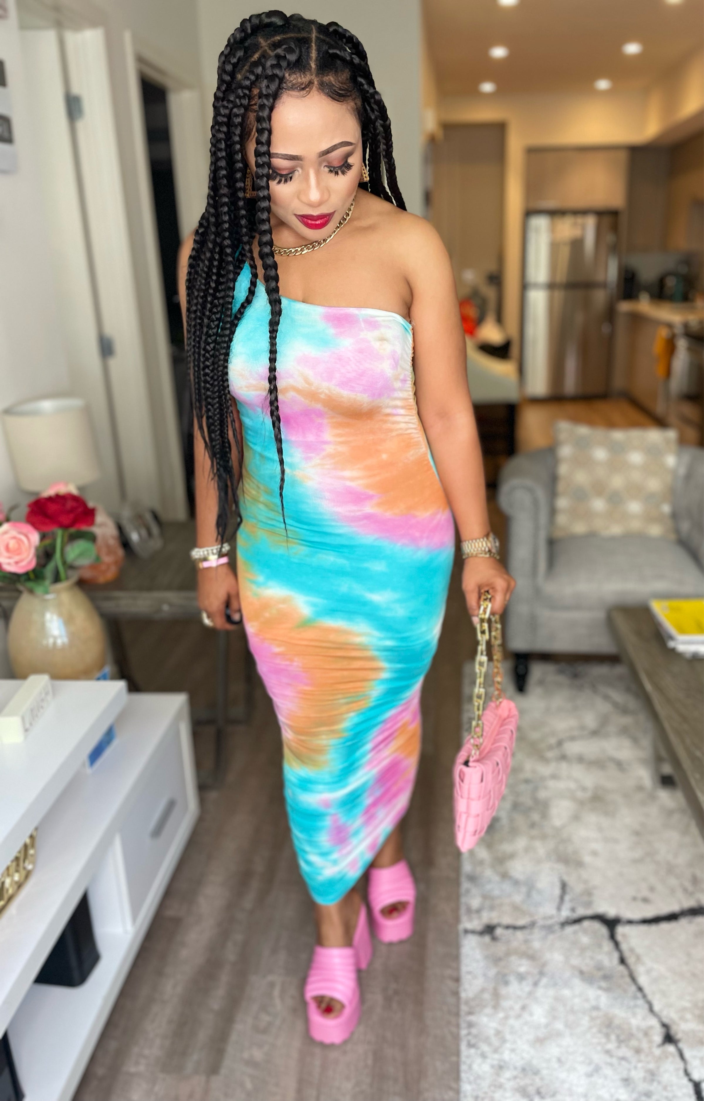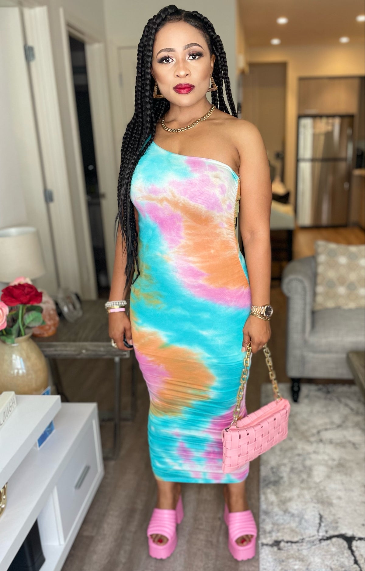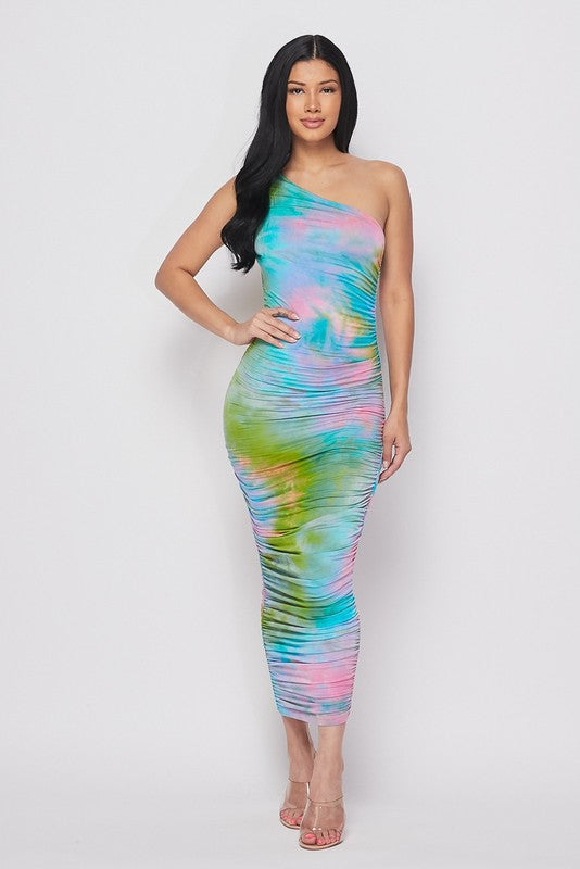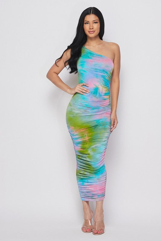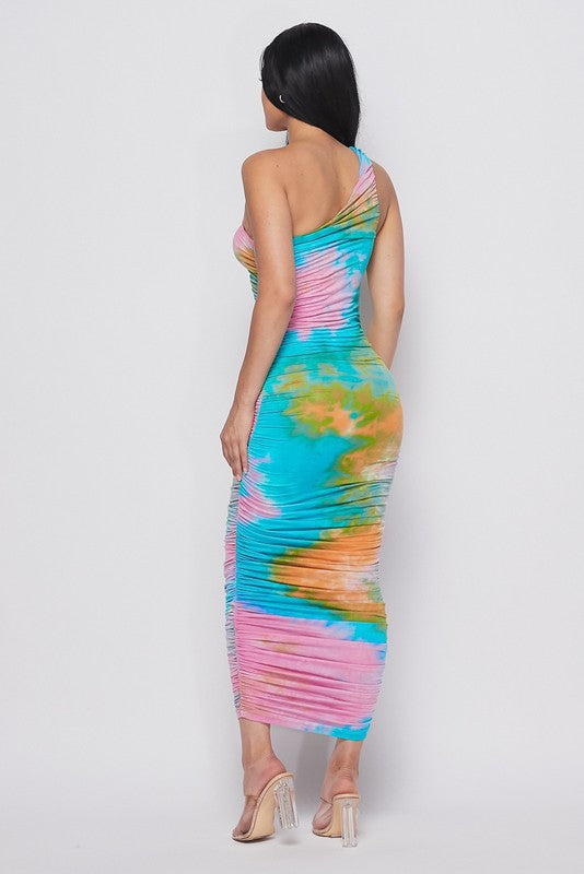 Dunty Shirring Tie Dye Maxi Dress-HOEA19430