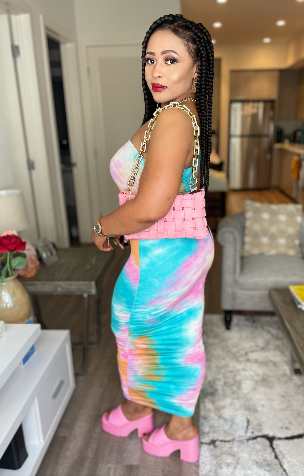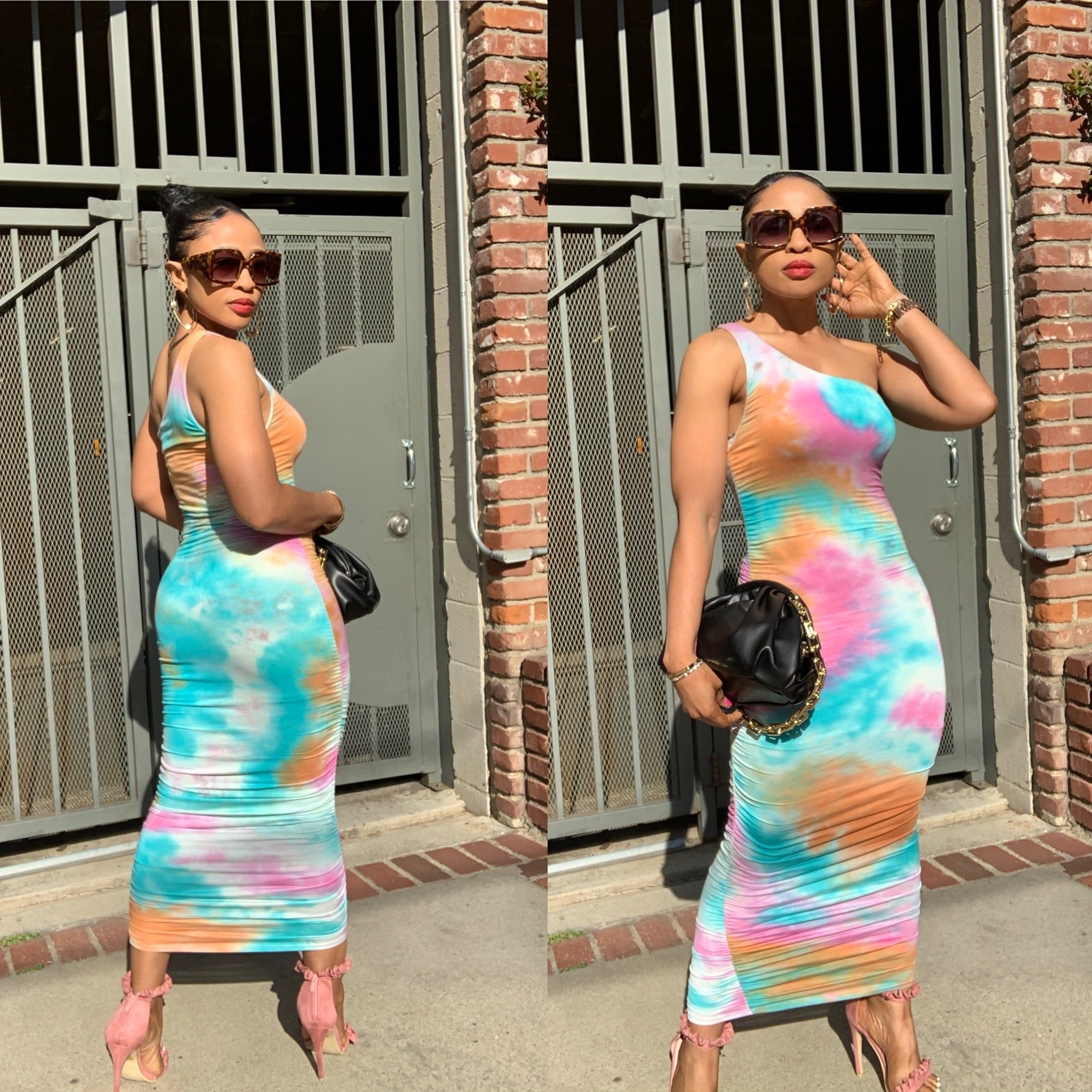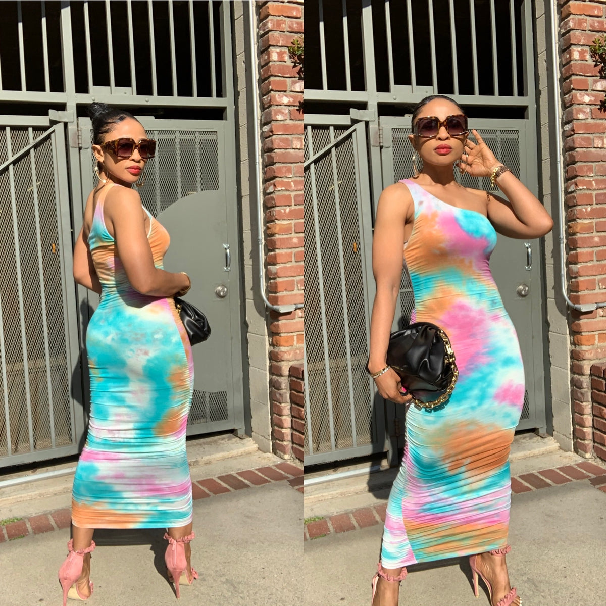 Dunty Shirring Tie Dye Maxi Dress-HOEA19430