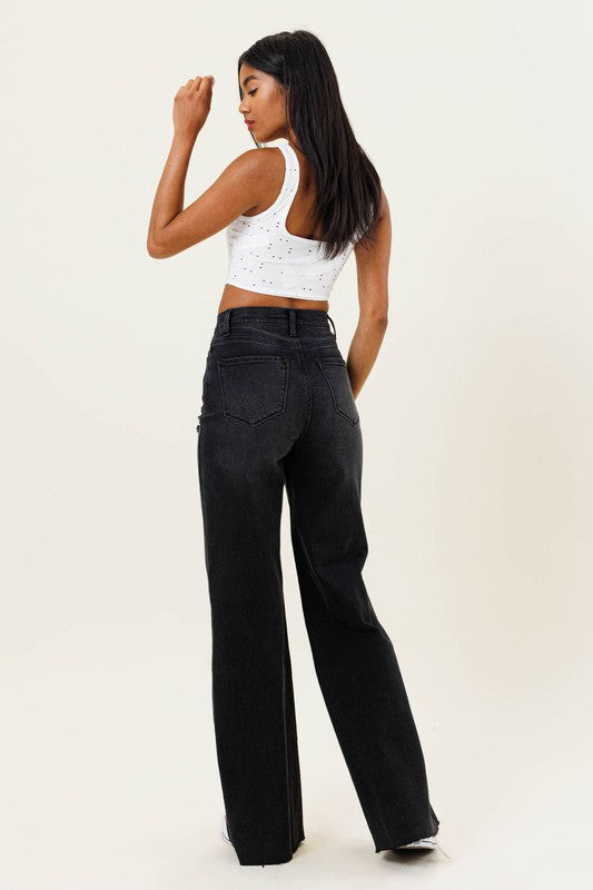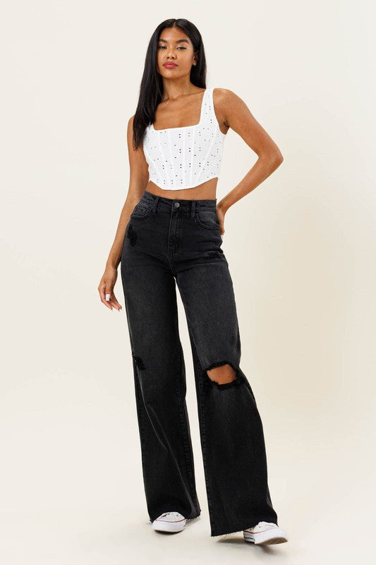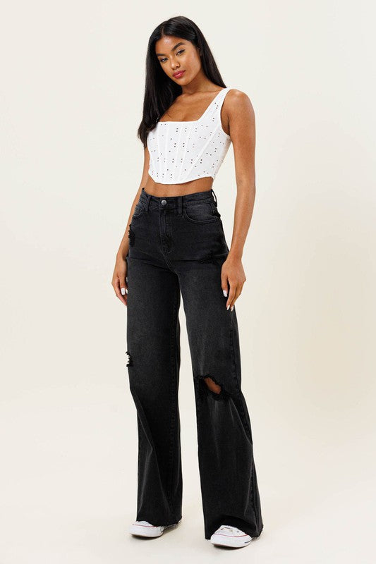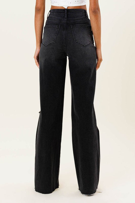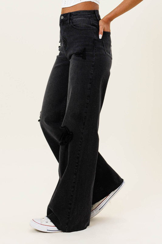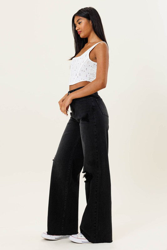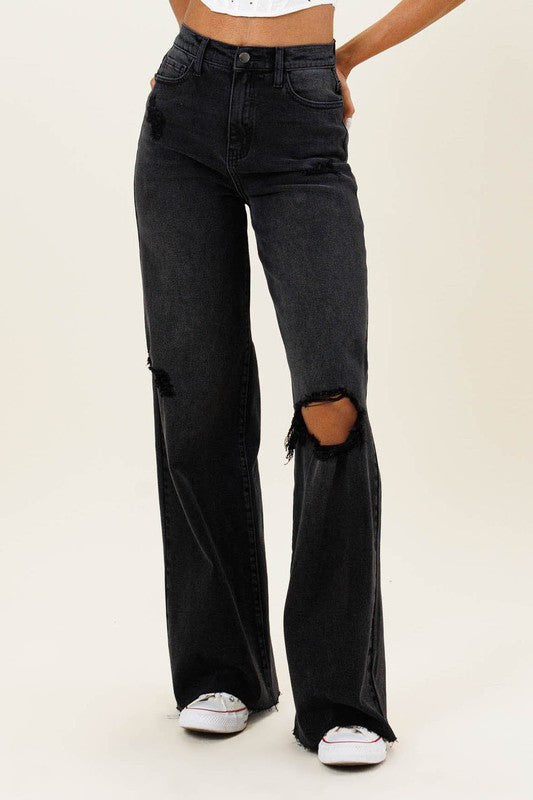 HIGH WAISTED DISTRESSED WIDE LEG